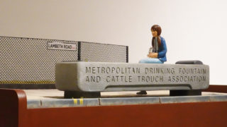 「小さな恋のメロディ」のミニチュア模型を作成しました。映画の主人公の一人、メロディがお父さんにお小遣いをもらうために家から金魚の入った瓶を持ってパブに向かう途中、道端にある馬の水飲み場で金魚を水槽に放して、もの思いに耽るシーンを取り上げました。